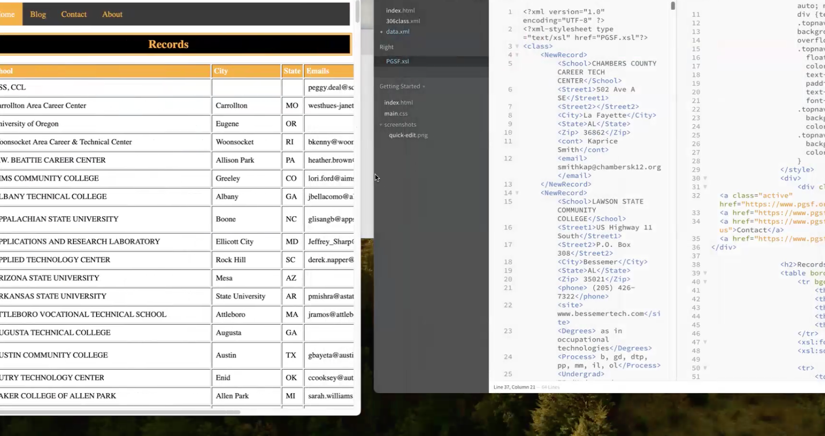 Designed a website displaying XML data in a table format, integrating HTML, CSS, and JavaScript for content, layout, and behavior.