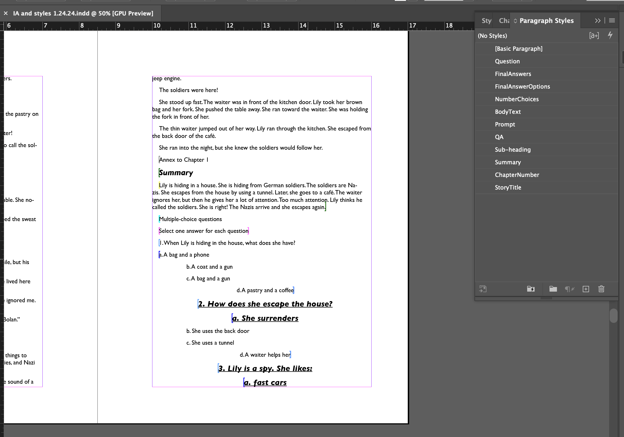 Recalled details about each section of the site, including Enrollment, Academics, Access Services, and Employment/Earnings, without revisiting the site, describing the data and visuals included in each section.Practical application of Adobe InDesign for publishing tasks