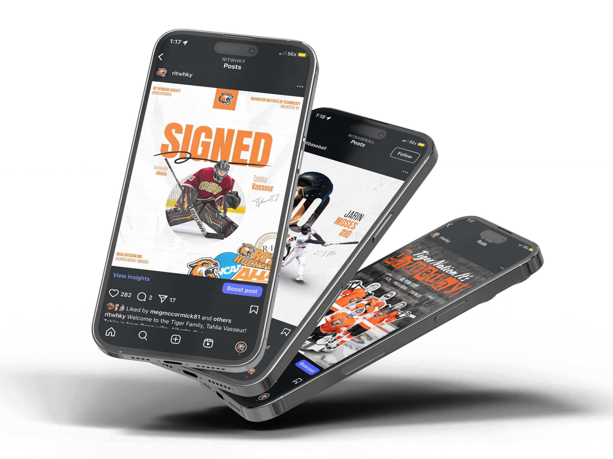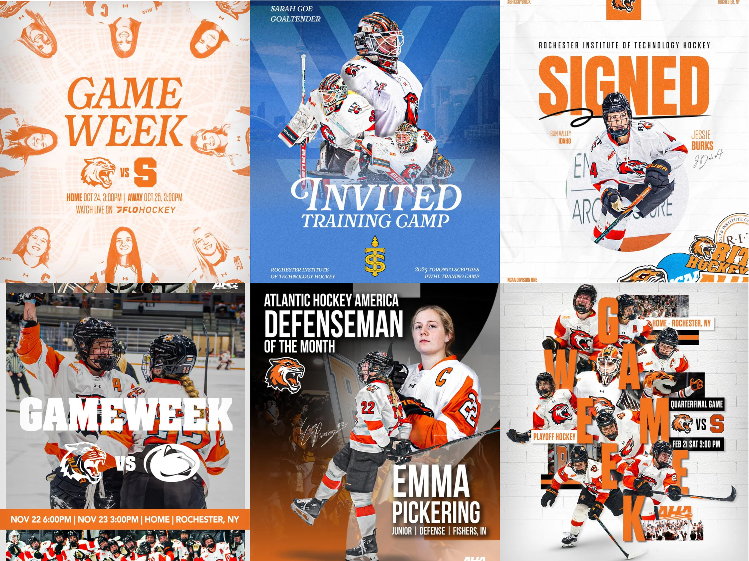 Megan currently serves as a Graduate Assistant with the Loyola University Chicago Athletics Creative Department, producing graphics, video, and social content across multiple sports programs. She is also the lead designer and helps produce social content for the Rochester Institute of Technology NCAA Division I Women’s Hockey team, creating gameday graphics, promotional assets, and social media content that strengthens the program’s brand and fan engagement.