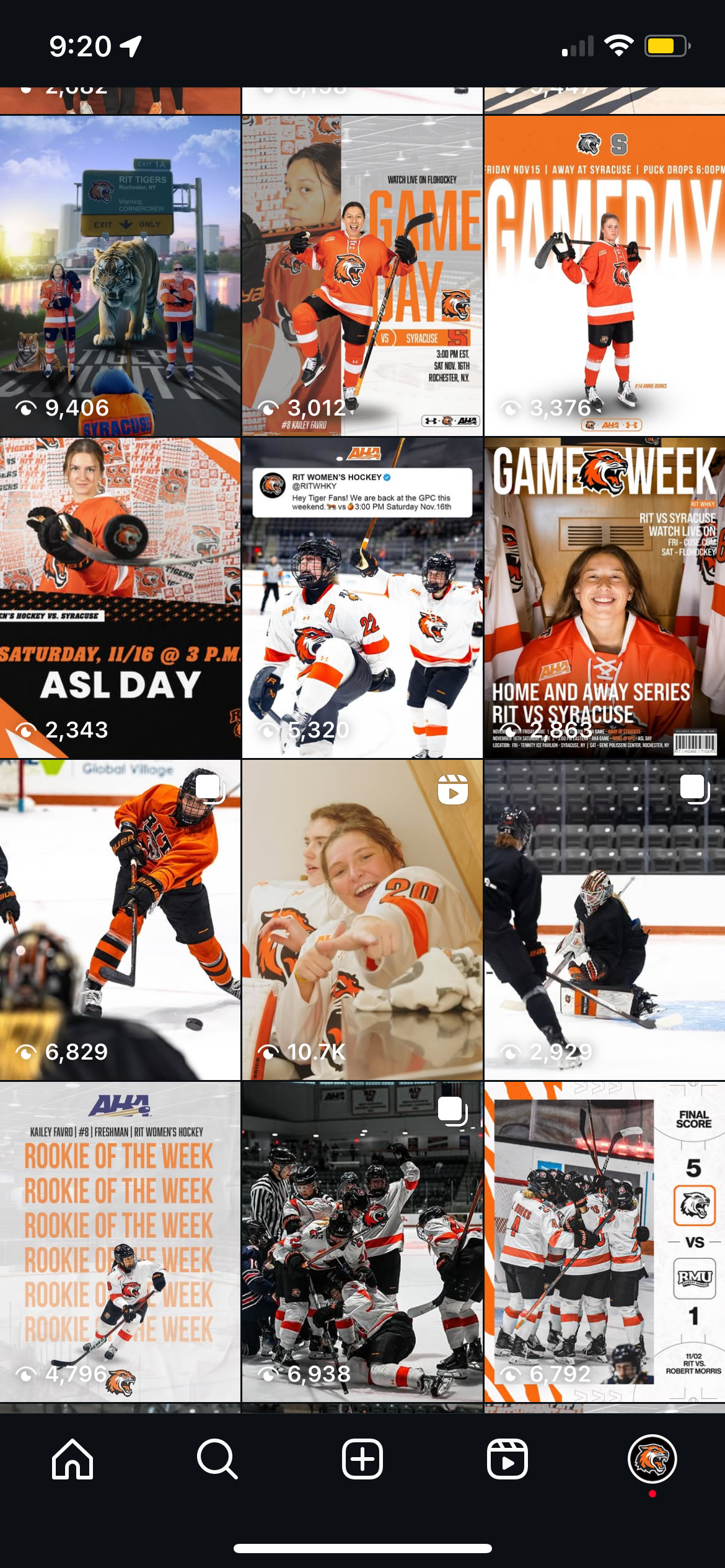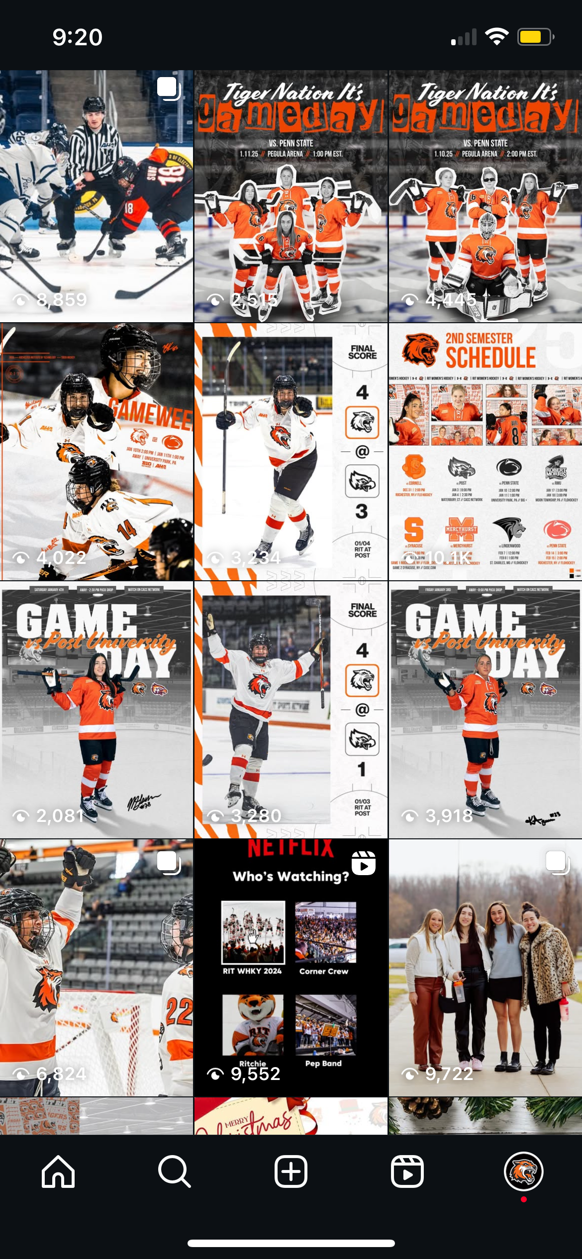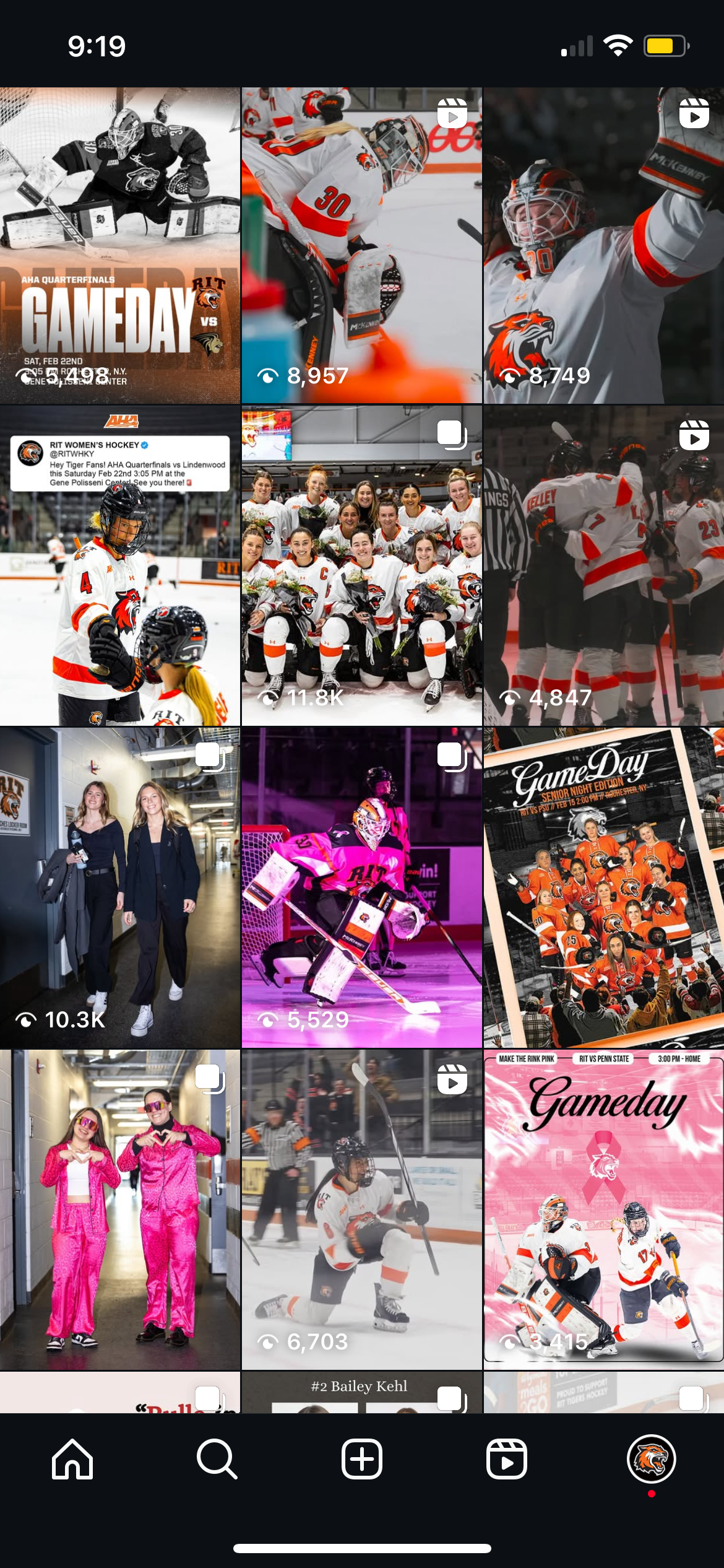 As both a Division I athlete and the team’s social media content creator, I bring a unique dual perspective to the RIT Women’s Hockey brand. I manage the team’s Instagram account, combining strategic planning with creative execution to highlight our players, engage fans, and build team culture through dynamic visual content.