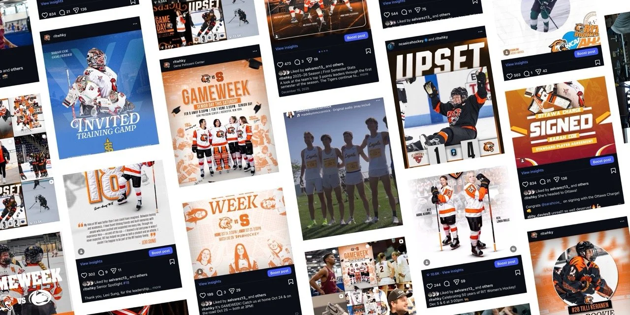 Created and managed digital content for RIT Women’s Hockey Instagram, with a focus on game week storytelling, game day graphics, and real-time score updates. Developed promotional content for major events, including the 50th Anniversary of RIT Women’s Hockey celebration, driving fan engagement and attendance.